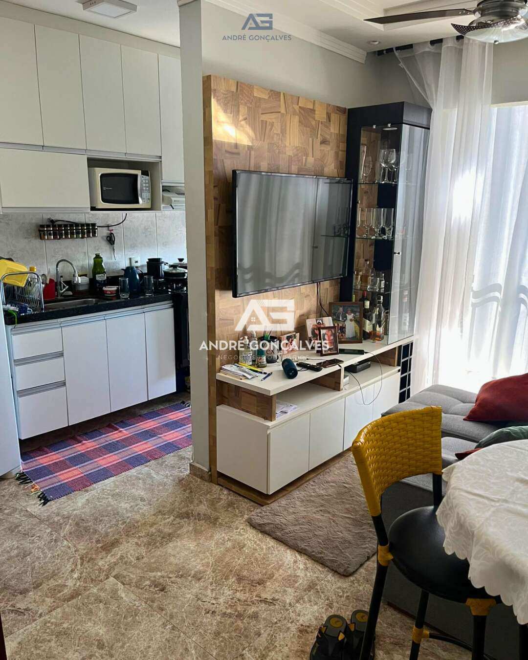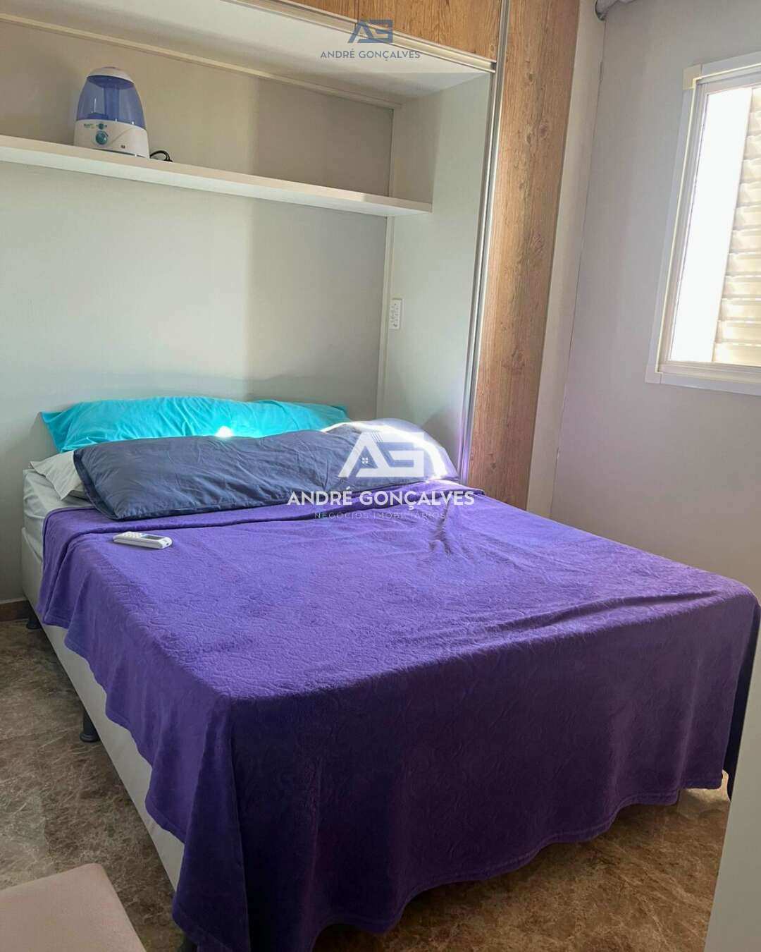 2 dormitórios com armários planejados e ar-condicionado 1 banheiro Sala aconchegante com ventilador de teto e painel de TV Cozinha com armários, sugar e forno Lavanderia Sacada 1 vaga de garagem coberta