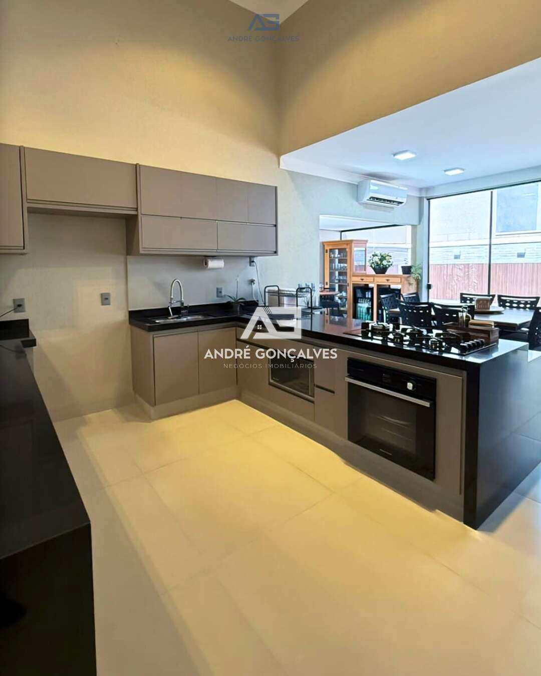 - Cozinha ampla, com planejados, cooktop e forno