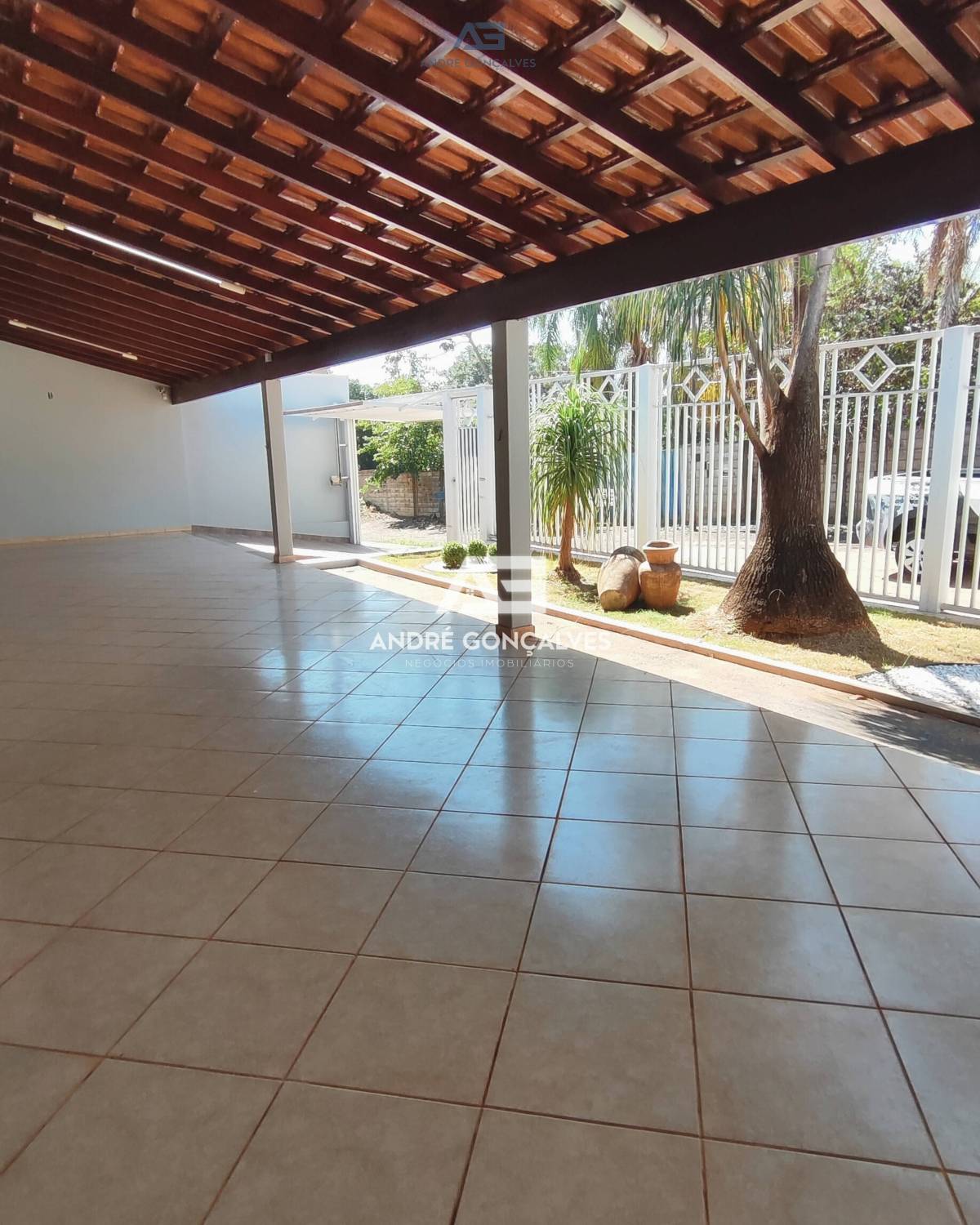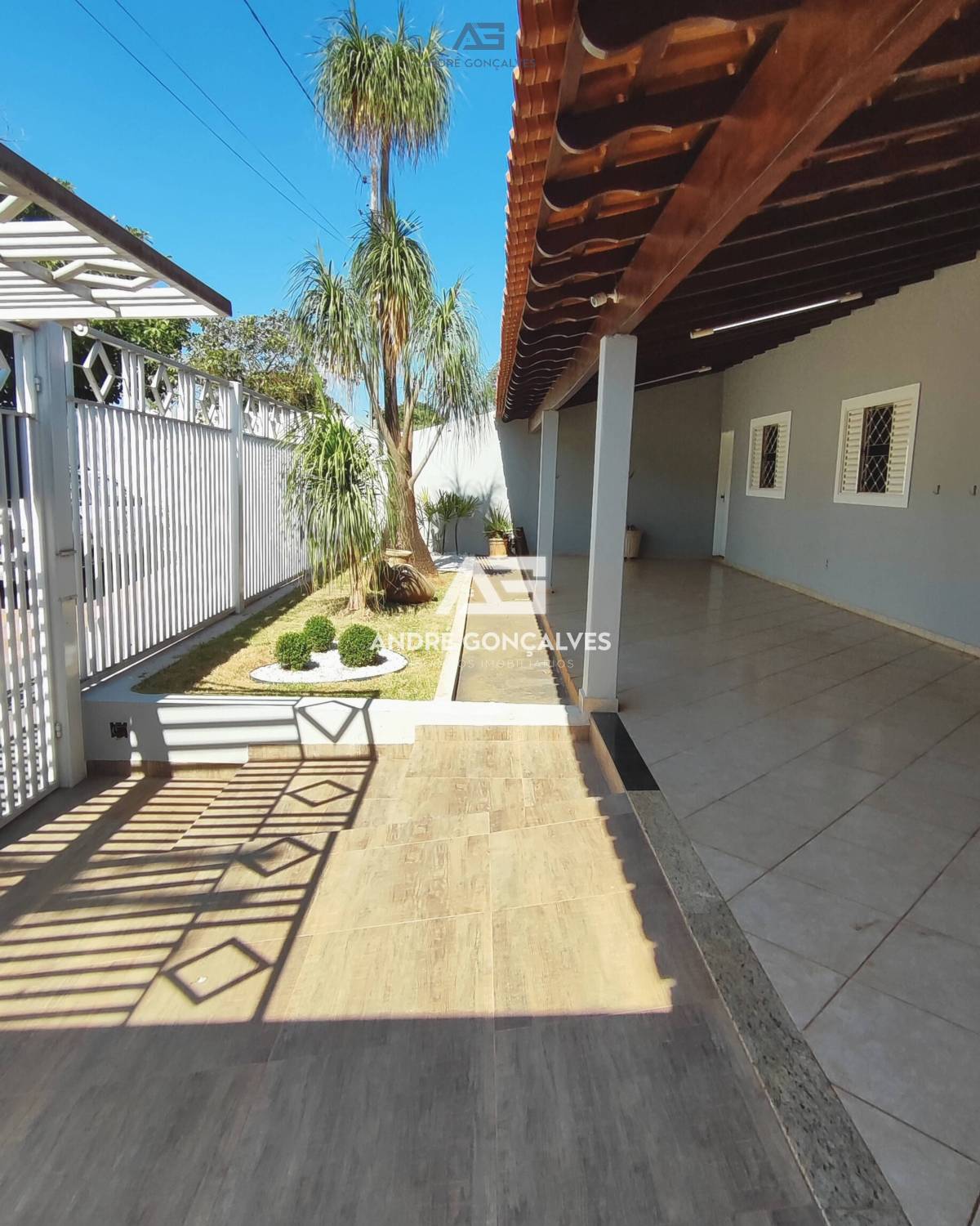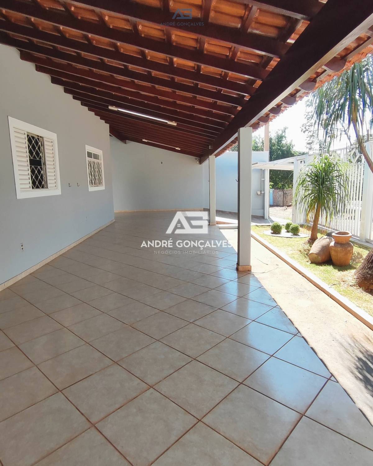 Frente com uma varanda grande
