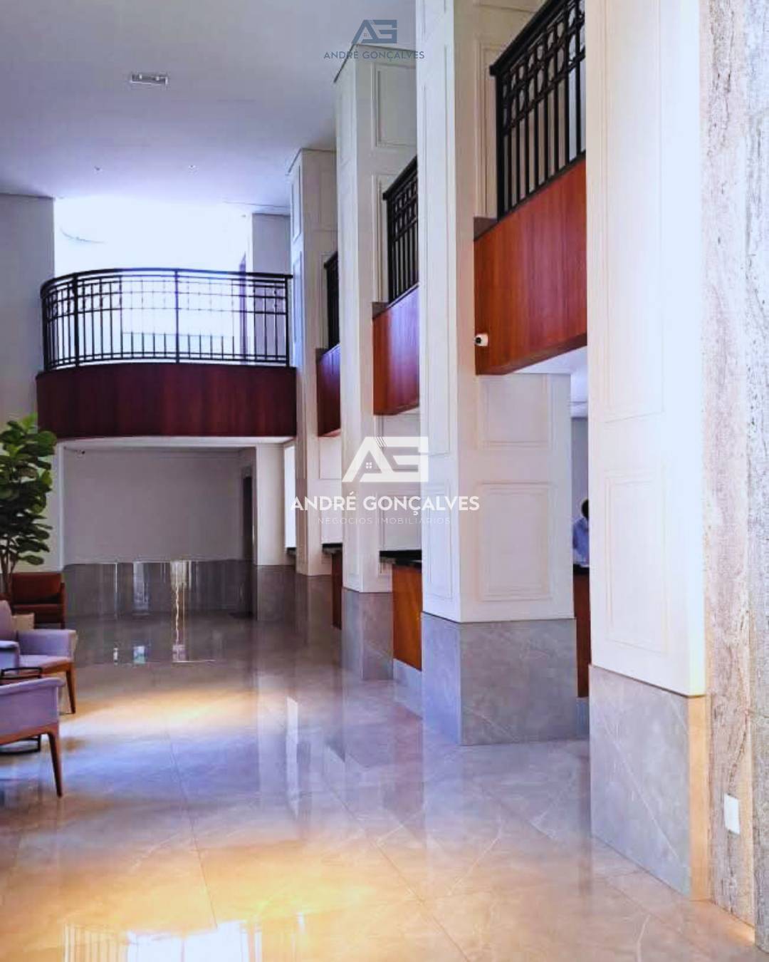 Escada de acesso ao nível 1 (elevador social e de serviço disponível aos 2 pavimentos)